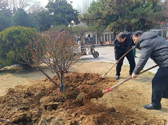 活动伊始,专业园艺师傅为参与人员进行植树技巧培训,详细讲解了树苗选择、挖坑规格、栽种方法、浇水养护等关键环节的注意事项,确保树苗栽种成活率。培训结束后,党员们迅速分组行动,分工协作、默契配合,每一道工序都做得一丝不苟,呈现出一派热火朝天的劳动景象。有的挥锹铲土、挖坑筑基,动作娴熟有力;有的扶苗定位、填土压实,确保树苗根系舒展;有的提桶浇水、细心培土,为新苗补充“生命之源”。经过近一个小时的辛勤劳作,原本空旷的绿化区里,1株垂丝海棠树和3株高杆月季树整齐排列、迎风挺立,为春日校园增添了一抹生机勃勃的新绿。